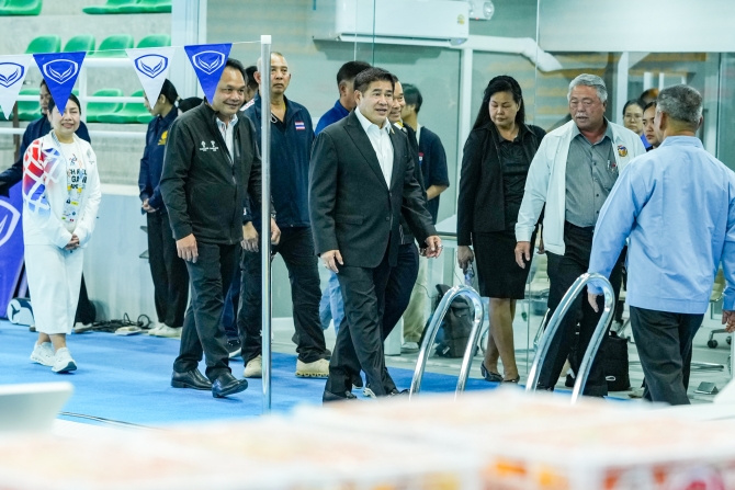 ร้อยเอก ธรรมนัส พรหมเผ่า รองนายกรัฐมนตรี ได้เดินทางมาตรวจเยี่ยมและให้กำลังใจนักกีฬาชุดซีเกมส์ภายใต้การดูแลของสมาคมกีฬาทางน้ำแห่งประเทศไทย ที่ตอนนี้เก็บตัวฝึกซ้อมที่สระว่ายน้ำ กกท.เมื่อช่วงค่ำของวันที่ 4 ธ.ค.2568 โดยมี อรรถกร ศิริลัทธยากร รัฐมนตรีว่าการกระทรวงการท่องเที่ยวและกีฬา, ปรีชา ลาลุน รอง กกท.ฝ่ายกีฬาเป็นเลิศและวิทยาศาสตร์การกีฬา, โปรดปราน สมานมิต รองผู้ว่าการ ฝ่ายกีฬาอาชีพและกีฬามวย, พลเอก สุพล จันทร์ผ่อง อุปนายกสมาคมฯ พร้อมด้วย พลตรี ดร. ธนน เเสงนาค อุปนายกสมาคมฯ, นายธนาวิชญ์โถสกุล เลขาธิการสมาคมฯ และ ผู้ช่วยศาสตราจารย์มานะ ภู่หลำ ผู้อำนวยการสำนักงานสมาคมฯให้การต้อนรับ