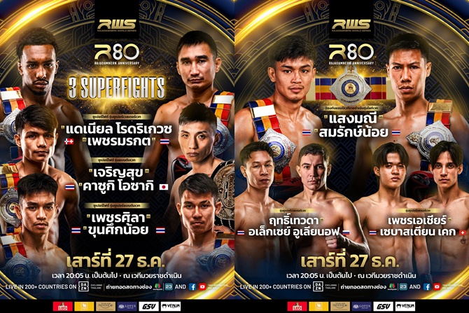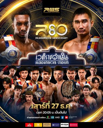 เมื่อวันที่ 24 ธันวาคม 2568, กรุงเทพฯ – เวทีมวยราชดำเนิน สังเวียนมวยไทยระดับตำนาน บ้านเกิดของมวยไทย จัดงานแถลงข่าวประกาศความพร้อมเตรียมสร้างปรากฏการณ์ครั้งประวัติศาสตร์ฉลองครบรอบ 80 ปี กับรายการมวยไทยศึกใหญ่ที่สุดแห่งปี โดยในทุกวันที่ 23 ธันวาคมของทุกปี ถือเป็นวันสถาปนาเวทีมวยราชดำเนิน และรายการ RWS Rajadamnern World Series ยังคงเดินหน้าสร้างอีเวนต์ใหญ่ประจำปี เพื่อตอกย้ำความยิ่งใหญ่ของวันเกิดสนามอย่างต่อเนื่อง และปีนี้ศึก “R80 Rajadamnern Anniversary” เตรียมระเบิดความมันส์ในวันเสาร์ที่ 27 ธันวาคม 2568 กับการรวมสุดยอดคู่มวยที่ดีที่สุดของปีมาไว้ในค่ำคืนเดียว นำทัพโดย 3 คู่ซูเปอร์ไฟต์หยุดโลก คู่ชิงแชมป์ราชดำเนิน 1 คู่ และคู่ประกอบรายการอีก 4 คู่