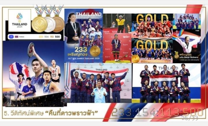 ปิดฉาก ‘R80 Rajadamnern Anniversary’ ศึกประวัติศาสตร์ฉลอง 80 ปี เวทีมวยราชดำเนิน RWS กระหน่ำแจกโบนัสสูงถึง 4.5 ล้านบาท 14:05 น.- กกท. มอบเงินรางวัลกว่า 487 ล้านบาท พร้อมยกย่องทัพนักกีฬาไทย ในการแข่งขันซีเกมส์ ครั้งที่ 33 19:40 น.