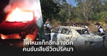 สลด! แท็กซี่จอดข้างทางถูกไฟไหม้ พบคนขับเสียชีวิตภายในรถ