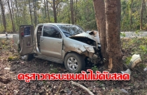 สลด! ครูสาวกระบะกลับไปสอนหนังสือเสียหลักชนต้นไม้ดับ นักเรียนนั่งมาด้วยเจ็บ 2 ราย