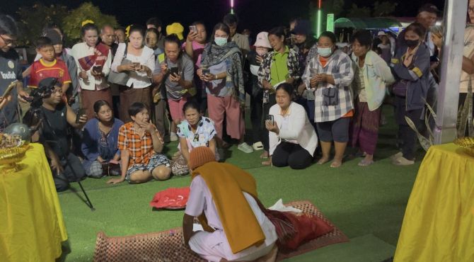เมื่อเวลา 19.09 น. วันที่ 14 กุมภาพันธ์ 2569 ผู้สื่อข่าวเดินทางไปยัง “สำนักพ่อปู่องค์ดำแสนสิริจันทรานาคราช” (บ้านสวนช่างจรวด) ตั้งอยู่ในหมู่บ้านโนนขวาว ตำบลหนองขาวใหญ่ อำเภอศีขรภูมิ จังหวัดสุรินทร์ ซึ่งได้มีการจัดพิธีบวงสรวงแก้บนครั้งใหญ่ ภายหลังมีผู้ศรัทธาได้รับโชคลาภจากการถูกรางวัลสลากกินแบ่งรัฐบาล รางวัลที่ 3 อีกทั้งยังตรงกับงานประจำปีของศาลพ่อปู่องค์ดำ และตรงกับวันวาเลนไทน์