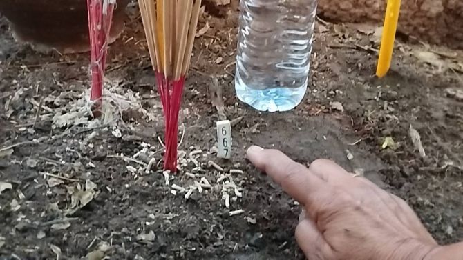 ขณะเดียวกัน หลังจากที่กราบไหว้แล้วเสร็จ ได้พากันจุดธูปจีนเสี่ยงดวงได้เลข 667 ไม่พอชาวบ้านได้พากันลุ้นจับเลขปิงปอง ได้เลข 829 พร้อมกับนำแป้งมาทาถู กับจอมปลวก บางคนเห็นเป็นเลข 62 บางคนเห็นเป็นเลข 68 ชาวบ้านจะนำเลขที่ได้นั้นจะเสี่ยงดวงในวันหวยออก หากถูกรางวัลจะนำสิ่งของและผ้า 3 สีมากราบไหว้