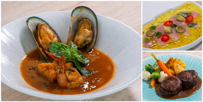 ส่วนอาหารจานหลักที่รังสรรค์มาอย่างพิถีพิถันนั้น มาพร้อมกับไฮไลต์ที่ไม่ควรพลาดอย่าง Baby Chicken with Chamoula & Artichokes เบบี้ชิกเก้นเนื้อนุ่มชุ่มฉ่ำ ออนท็อปบนซอสเพสโตหอมละมุน เสิร์ฟพร้อมอาร์ติโชกและผักสไตล์เมดิเตอร์เรเนียนหลากชนิด และ Whole Roasted Seabream, Salsa Verde ปลากะพงทะเลอันดามันทั้งตัว ย่างจนหนังกรอบ เนื้อฉ่ำ เหมาะสำหรับการแชร์บนโต๊ะอาหารที่แสนอบอุ่น รับประทานคู่กับซัลซาเวอร์เด ปรุงรสด้วยสมุนไพร มะนาว และมันฝรั่งอบ โดยนอกจากนี้ยังมีเมนูสเต๊ก เช่น ฟิเลมิยอง เนื้อนำเข้าจากออสเตรเลีย และแลมบ์ช็อป เนื้อแกะนำเข้าจากนิวซีแลนด์ รวมถึงบรรดาของหวานกลิ่นอายเมดิเตอร์เรเนียนที่น่าลิ้มลองอีกมากมาย อาทิ Soufflé ซูเฟลเนื้อนุ่มเบา อบใหม่แบบชิ้นต่อชิ้น Chocolate Budino with Cinnamon Ice Cream ช็อกโกแลตบูดิโนสไตล์อิตาเลียน เสิร์ฟคู่กับไอศกรีมซินนามอน และ Olive Oil Cake with Candied Citrus เค้กน้ำมันมะกอกรับประทานคู่กับผลไม้รสเปรี้ยวเชื่อม เพื่อปิดท้ายมื้ออาหารอย่างสมบูรณ์แบบ